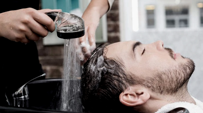 1. 수압은 약하게 미온수로 머리 전체를 적신다.